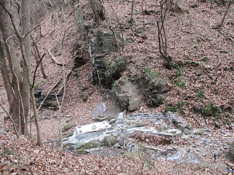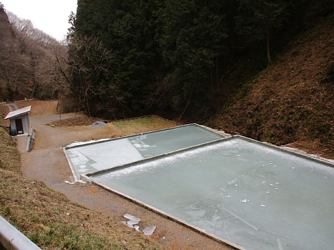 山の地下水を管で氷池に引いています。 |
