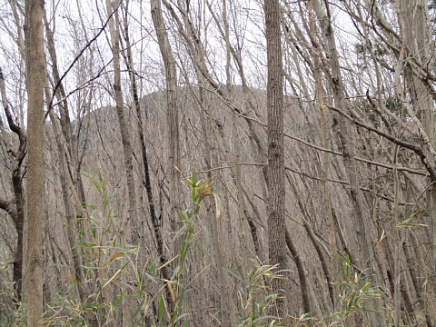 木の間から宝登山が見えます。 |