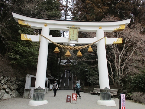 | 鳥居をくぐると急な長い階段があります。 |