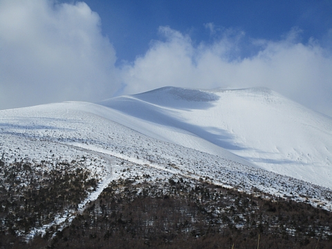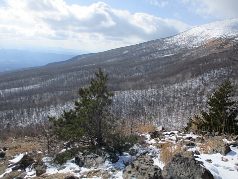 | 時々浅間山の雪景色を眺めながら歩きました。 |