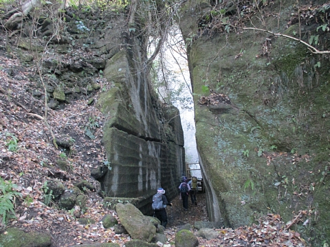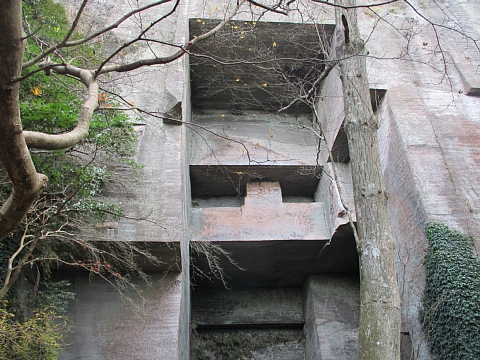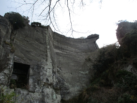 | 鋸山を下山しながら石切場跡を通って・・・・。 |