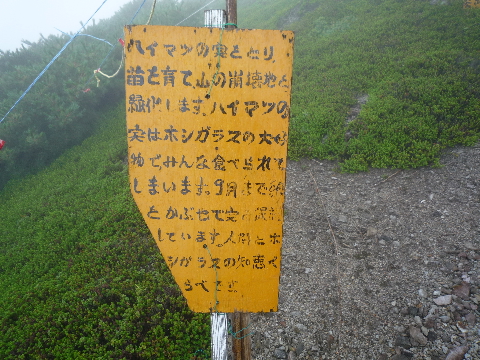 何でもホシガラスに実を食べられないようにとのこと。 崩壊地は何とか食い止めたいものです。 |
