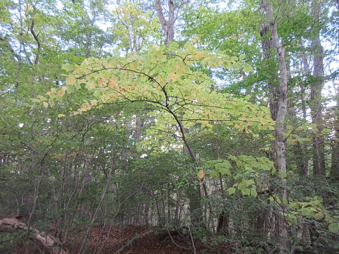 | 30分かからずに頂上です。 | 黄色に色付いている木が一本だけ。 |