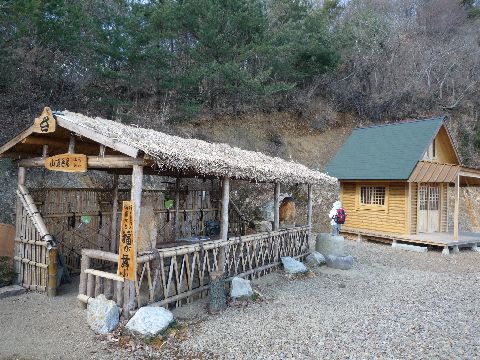 | 先ほどのピークを少し下ると立派な休憩施設が有りました。山頂番屋 足利鉱山 と有ります。 | 無事カエル神だそうです。 せっかくなので一休みさせてもらいます。 |