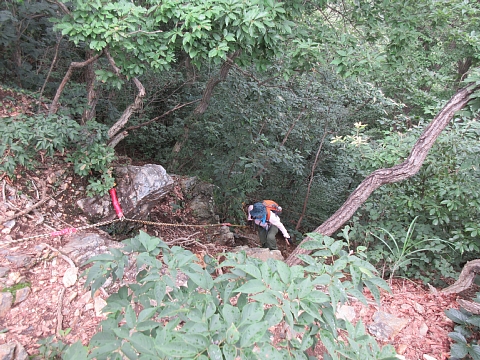 本日唯一と思われる急登。 おK3も登ってきた。 |