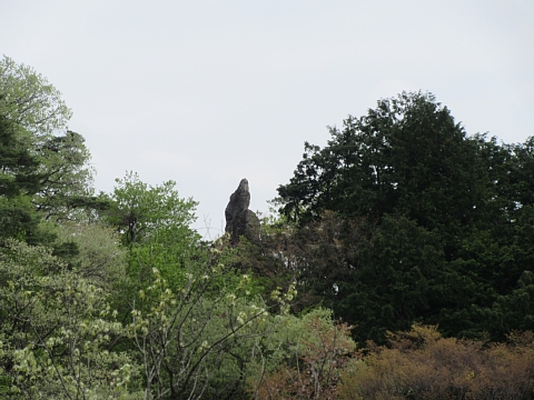 | 頂上直下の岩場。ここだけが急登の部類。 | 天狗と小天狗。みどりのお面はカッパではありませんので悪しからず。 |