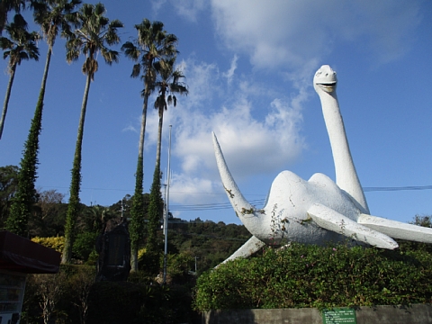 ホテルに向かう途中に池田湖に寄り「イッシー」をパチリ! |