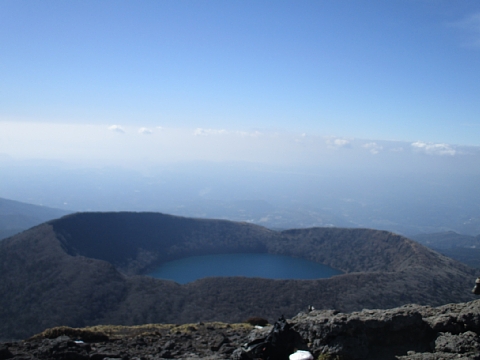 | 白い噴煙をはく新燃岳 | 大浪池 |