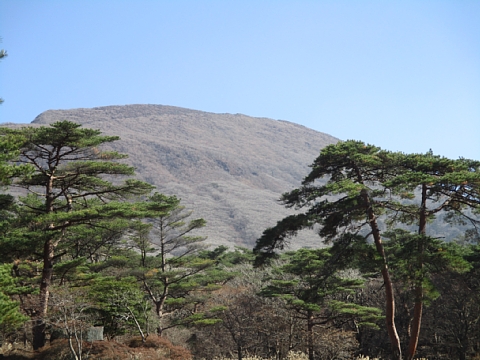 展望台 春にはミヤマキリシマの花木が咲き誇り山一帯がピンク色に染まるそうです。登山の支度なしでここまで来れます。 そして十分堪能できます。 |