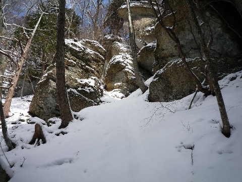 本当は和尚台頂上の直前まで行きたかったのですが、氷りの固まりが落ちてきて怖くなりました。