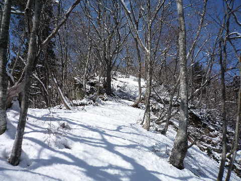 雪で踏み跡が不明ですが所々に沼田市の立派な道標がありますので安心です。 |