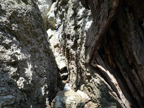 | 和尚台の胎内潜りの入り口の様子です。戻りにトライしましょう。 トレースも無いのでここからが慎重になります。 |