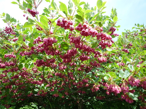 | 休憩地に最適な送電線鉄塔です。何人も休憩しています。 | ベニサラサドウダンというツツジの仲間。 |
