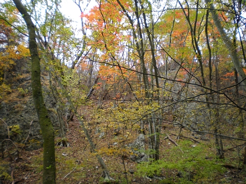 | 今日は西尾根では無くて駒形の沢コースを。西尾根も綺麗だろうにね。 | 黄色に色着いていますね。 |