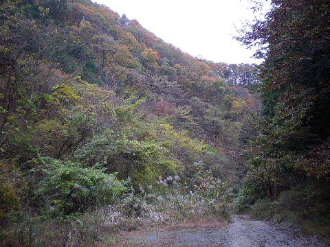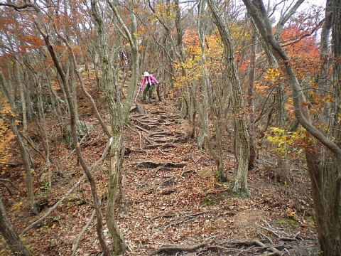 | 残念ながら袈裟丸も見えない。 | 仁田山岳頂上付近の紅葉はピークを過ぎて枯れ始めています。 |