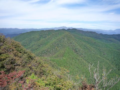 足場が緩い場所の急登に少し手こずるが、すぐに尾根にたどり着いた。 尾根は小薮もほとんど無く、前回の尾根と同様に歩きやすい。 |