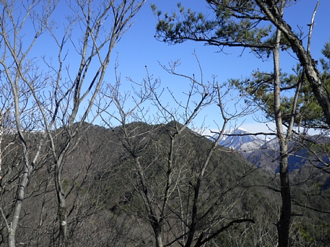 真北には備前楯山の山頂が見えてきました。 このあとたそがれさんと話をしながら稜線を下っているといつの間にか西方向に下っている。たそがれさんからこの方向おかしいですよといわれハタと気が付き登り返す。自分が先導していたので少し恥ずかしい。 |