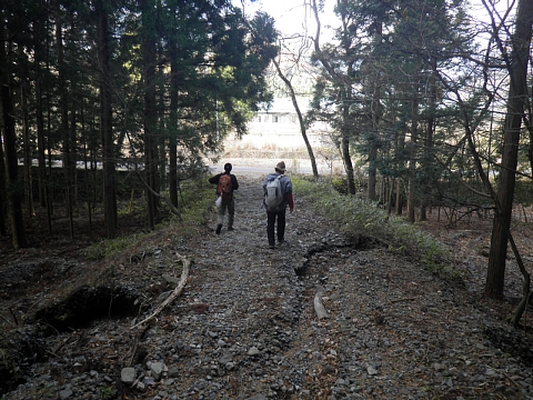 早速登山口候補地に向けて移動するが、122号と立体交差する道路の広い路肩を見つけ2台を駐車する。