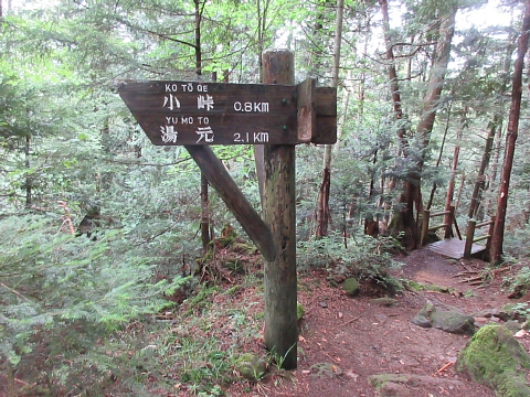 | 小峠まで800m。全行程の2/3は過ぎたようです。 | 小峠にはベンチが有りました。 |