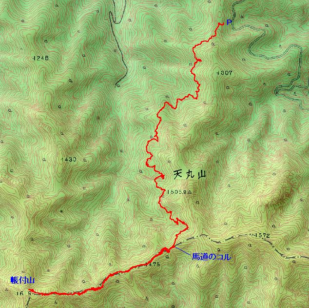 登山口〜馬道のコル〜帳付山〜馬道のコル〜登山口
