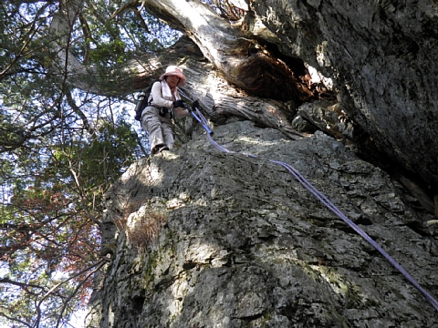 | 戻るのはしゃくなので面倒だがザイルを引っぱり出す。 | 6〜7mなので飛び降りるわけにもいかず・・・。 |