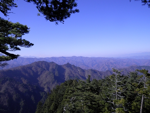 頂上西端では先客カップルが食事中でしたが、ちょっとだけお邪魔して写真を撮らせてもらいます。 赤久縄山が見えます。 浅間山は少し霞んでいました。 日陰の山頂標識付近に戻り我々も昼食を摂りましょう。 さすがに気温は低く、汗が乾いて余計寒くなる。 充分休んだので帰る前にもう一度西端に行って景色を眺めて下山にかかりましょう。 |