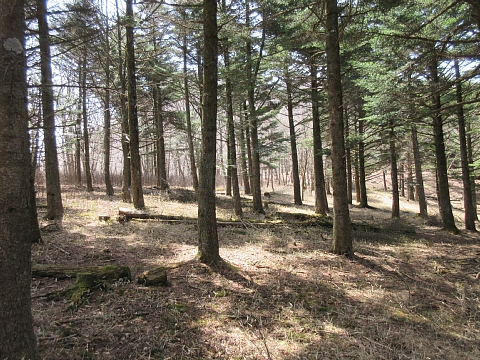 作業道は無視して県境に沿って直登する。 藪も無いので歩きやすい。 |