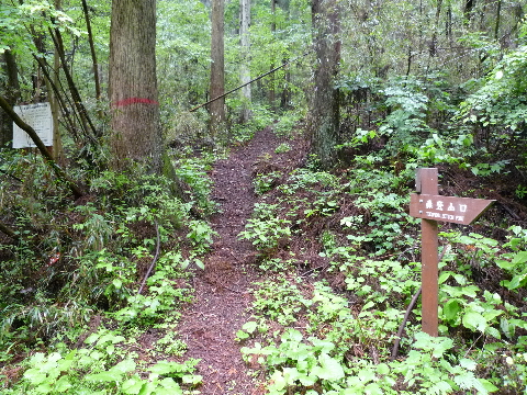 | しばらく作業道を進むと山道への入り口となる道標が現れた。 | ここからは普通の山道歩きとなる。 |