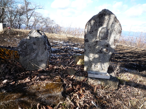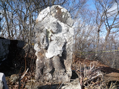 | 石像だけでなく石柱もあります。 | 眼下にみかぼ高原荘が見える。駐車場にあった案内によると料金400円の日帰り入浴との事ですが、16:00までというのでちょと無理か。 |
