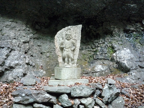 | 滝壺の正面の不動明王。 | 向かって左側斜面の不動明王。 |