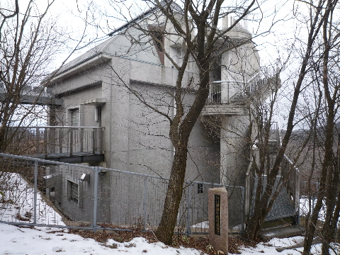 | おK3、最初は吹雪いていそうな山頂を見たときは物見山だけで帰ろう等といっていましたが、晴れて来ると元気が出るようです。 | 本日二個目の自然動物撮影用カメラ。当然我々にも反応します。 すいませんね、目的外の撮したくも無い我らが大写しになってしまって。 |