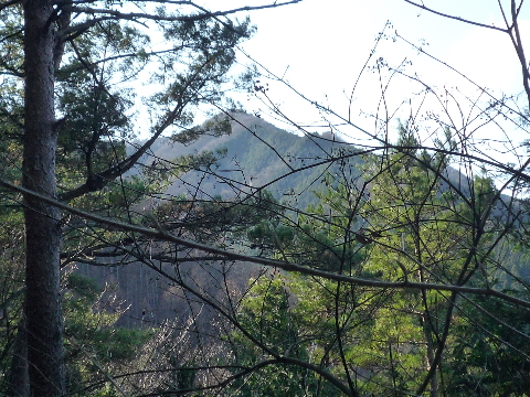 | 谷コースの下山中に唯一と言って良いすばらしい景観が。二子山ですね。見るからに怖そうですね。先日白砂山で会った上級者は「そんなでもないですよ。普通ですよ」とおっしゃっていたが。 | 谷コースは普通木々に覆われて光が遮られ暗いものですが、ここは雑木が伐採されて明るい。 本当に良く手が入って整備されています。 |