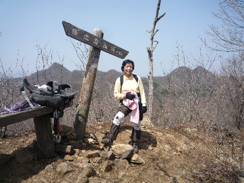 | お地蔵様からすぐにベンチまで設置された西立岩頂上です。 | 遠方は春霞でダメですが、ほぼ360度の景観が望めます。 |