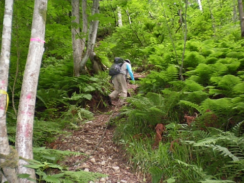 | 正面に荒海山の頂上部が見えて来ました。 | なだらかな登りが続きます。 |