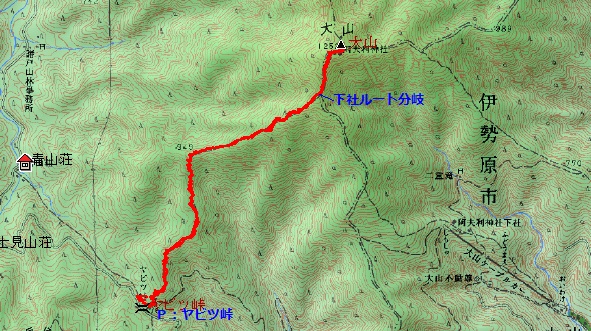 【コース】 ヤビツ峠駐車場〜下社ルート分岐〜大山〜下社ルート分岐〜ヤビツ峠駐車場