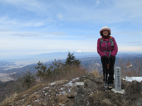 | 八ヶ岳。まだまだ山頂付近は白いですね。 | ゆっくりと山頂でランチタイムの後は寒くなったのでそそくさと下山です。 |