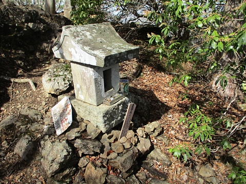 | これからの下りに備えて、石祠の横で一休み。 | 頂上直下の急登のクサリ場です。とても写真を撮る余裕などなく、少し緩やかになった所でパチリ。 |