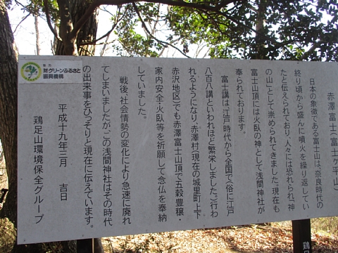 | 少し歩くと浅間神社 中宮跡に着きました。 | 赤澤富士(富士ヶ平山)山頂です。 |