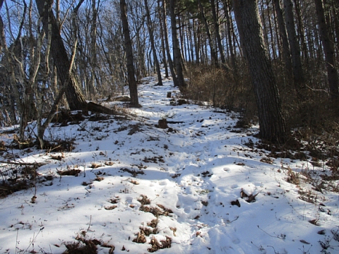 陽射しが届く所は雪もなく歩き易かったです。 |