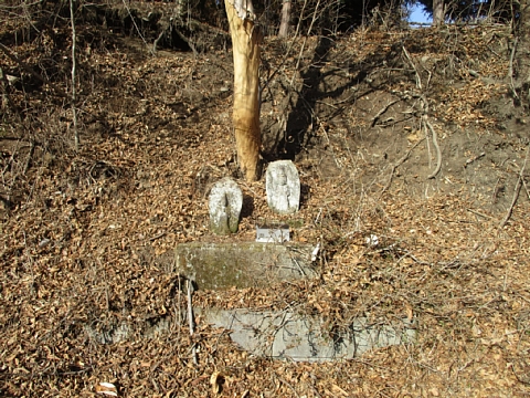 | 前方に少し雪が見えますが、アイゼンを持っているので安心です。 | 椚峠の石仏に手を合わせました。 |