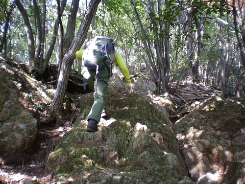 | えっ、ここを登るの? 迂回しなさいよ。(笑) | この先の岩場で大渋滞。ハイトスは待たずに左方向に回り込み登る。 |