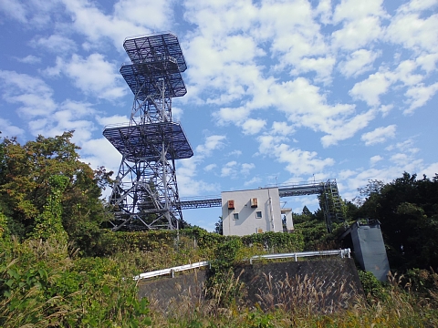 物見山に向かう途中の高指山。 頂上は電波塔施設があり、周辺をうろついたのですが山頂標識など見当たりませんでした。 |
