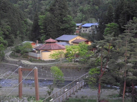 川を挟んだ対岸には「のめこい湯」。食事も出来ます。 |