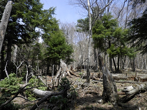 | 仰せの通りに斜面を急登し尾根に上がると確かに歩きやすい。 |