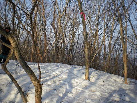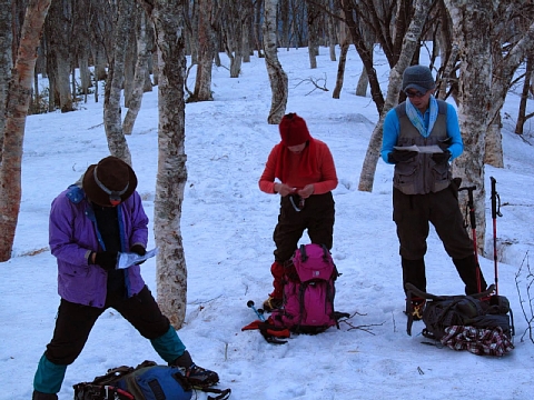 自分は当然幕営と考えていたのであるが、おK3は「寒いから雪の中でのテントはイヤだ。」とのたまわれるでは無いか。