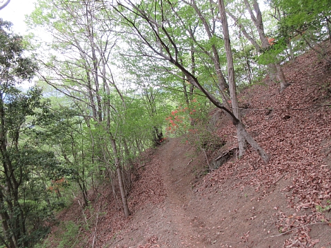 原因はこの急傾斜の下り。おK3はすいすいと下ったが。 |