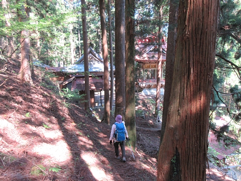 | 沢を渡って・・・。 | 神社が見えてきたらおしまい。 |