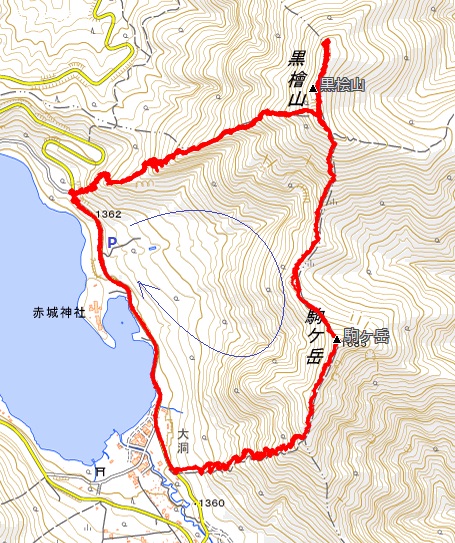 【コース】 黒檜登山駐車場〜黒檜山〜展望台〜黒檜山〜駒ヶ岳〜駒ヶ岳登山口〜黒檜登山駐車場