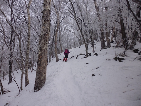 | 駒ヶ岳に行ってみましょう・・と云うことで分岐から降ります。 | 背景の黒檜は全く見えません。 |