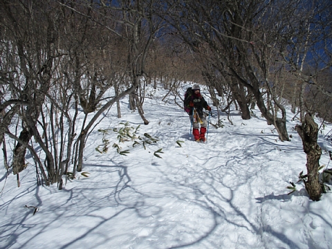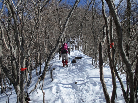 好天に誘われて多くの登山者が訪れたようで、今回はワカンも必要の無い踏みしめられた雪道歩きとなりました。